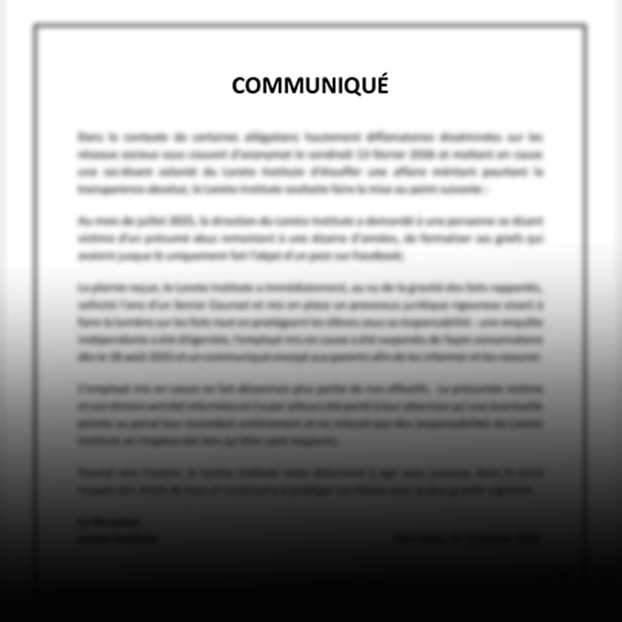 **Une part de silence.** Lourde, étouffante. Celle qui a entouré cette affaire qui a secoué l’univers de la Loreto Junior School de Curepipe en a...