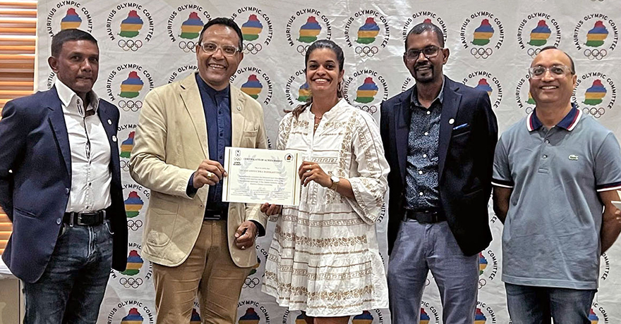 Dispensé à Maurice par le Comité olympique mauricien (COM), les participants ont cette année tous achevé le cursus avec succès, établissant ainsi un nouveau standard d’engagement et de performance. La cérémonie de remise de certificats s’est tenue le dimanche 5 octobre au siège du COM à Trianon en présence de Richard Papie, premier vice-président du COM, ainsi que de Soureindra Seebaluck et Rajessen Desscann, membres du comité exécutif.