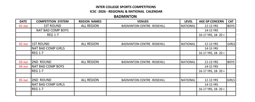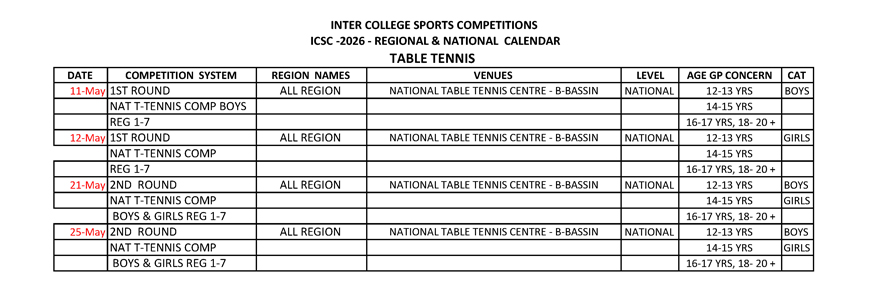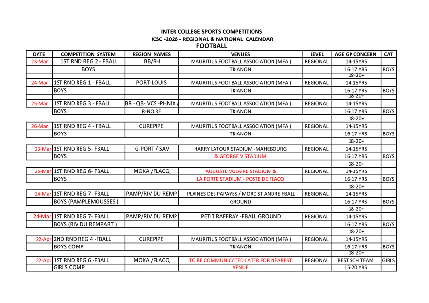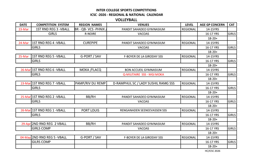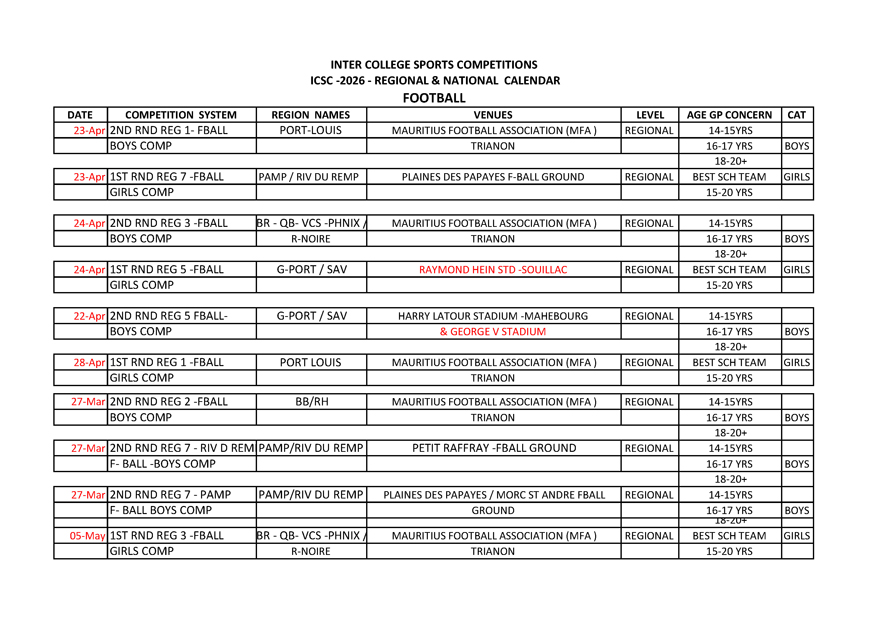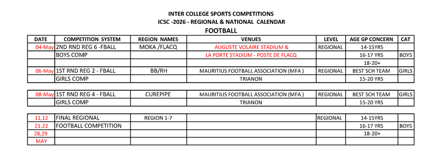 Voir le calendrier de compétition ci-dessous :
