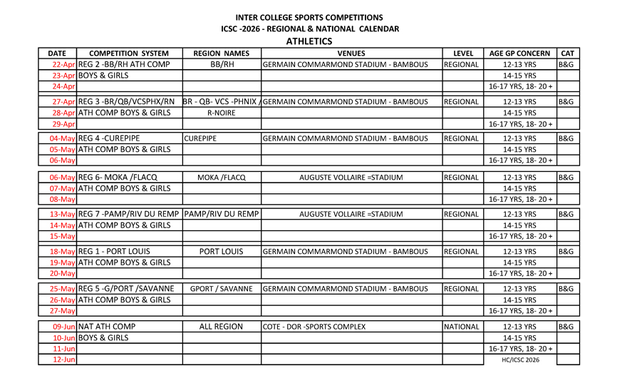L’édition 2026 des Jeux Intercollèges démarrent ce lundi 23 mars dans plusieurs régions à travers le pays avec les préliminaires dans plusieurs disciplines à l’exception de la natation où on aura droit uniquement à la phase finale.