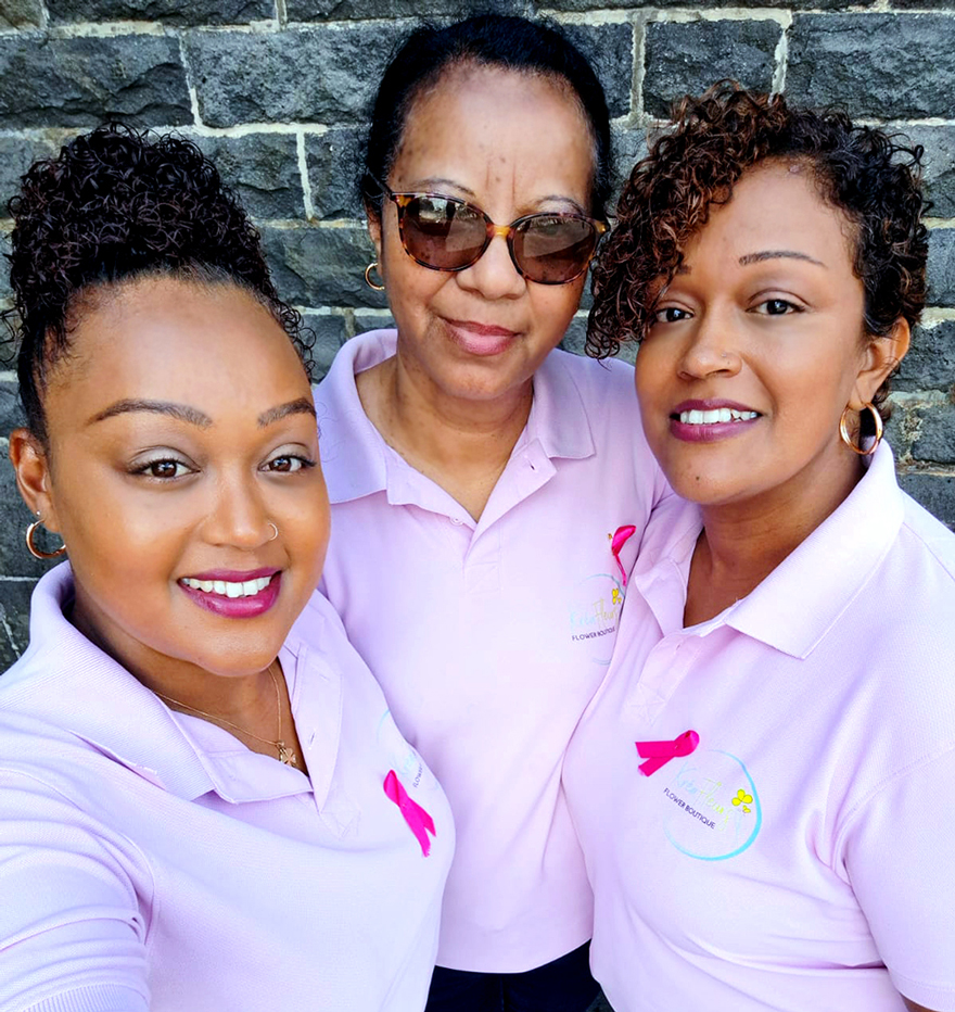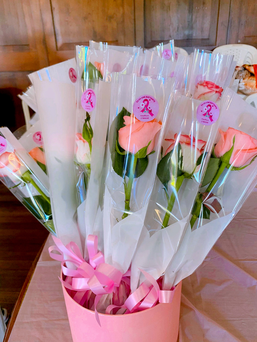 Les «ah», les «oh», les «tro zoli sa», les «tonn get sa kouma li extra» fusent au Plaza à la mi-journée. Mais qu’est-ce qui provoque cet émoi généralisé ? Julianna Nadal, Winnie Ozone et sa sœur Cindy Baboo distribuent des roses à toutes celles présentes. Ce trio de girls est à la tête d’une boutique de fleuriste à Souillac, Kreafleurs, et a décidé de sponsoriser l’événement de Link to Life. Une envie de s’engager qui a d’abord vu le jour dans leur enseigne avec une déco «spécial octobre rose» et la mise en place d’un panier à quête pour celles qui luttent contre la maladie. Julianna explique qu’elle a vu sa sœur lutter contre un cancer du sein. Winnie et Cindy ont perdu, elles, leur tante des suites de cette maladie. Alors, c’est tout naturellement, expliquent ces entrepreneures, qu’elles se devaient d’être là, ce jeudi 16 octobre.