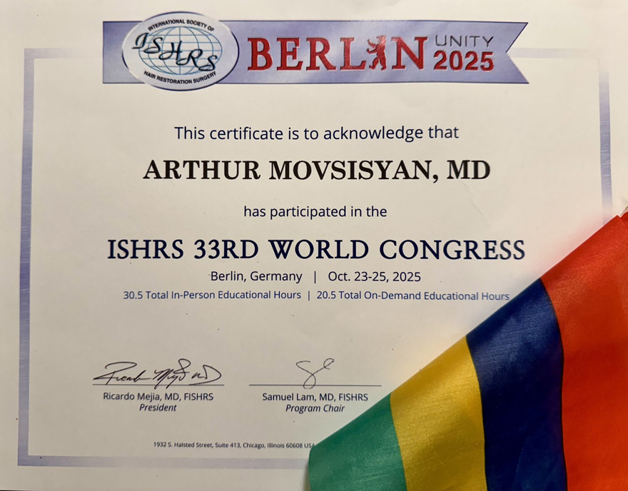 Seul membre actif de l’ISHRS à Maurice, le Dr Movsisyan participe régulièrement à des formations depuis son adhésion en 2008. Lors du congrès, il a suivi un programme complet avec des conférences, des ateliers et des séminaires sur les nouvelles techniques et innovations en restauration capillaire.