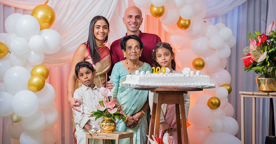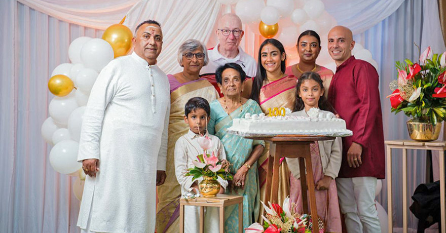 Enn ti bolfam… Mais tellement grande pour ses proches. Meenatchee Bissesur est le cœur d’une famille soudée comme les maillons d’une même chaîne. Toujours présente, que ce soit dans les instants de joie ou les épreuves, elle incarne la force tranquille et l’amour inconditionnel. Née le 20 août 1925, Fifi a célébré son centième anniversaire en deux fois, le 15 août par une prière et le 24 août dans une salle de fête à Curepipe, entourée de tous ses proches. «On a toujours fêté son anniversaire par une prière, car ma mère est une femme très croyante», confie son fils Ravin avec émotion.