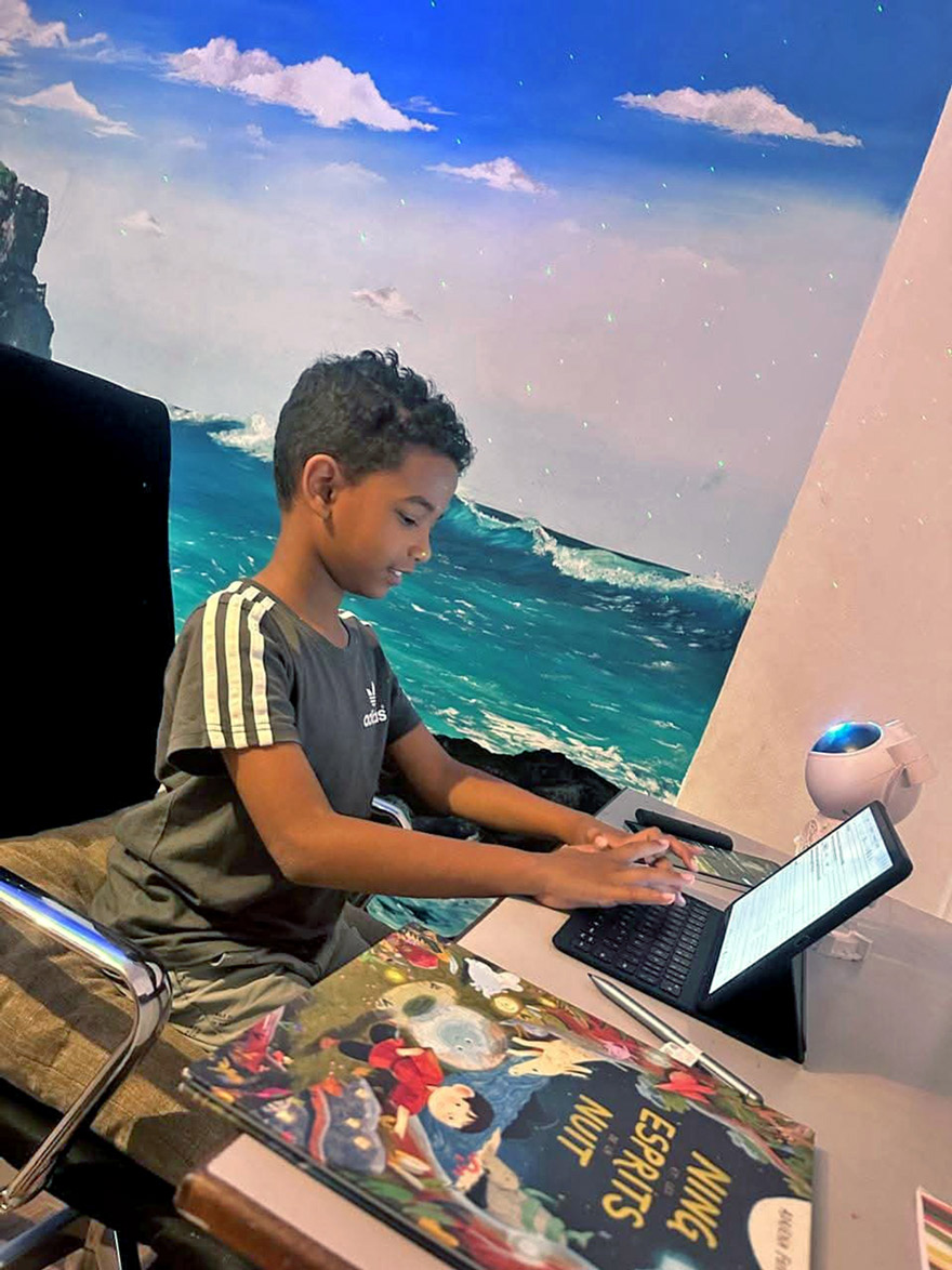 J’ai écrit beaucoup d’histoires dans mes cahiers. Un jour, Maman a lu et elle a pleuré. Un autre jour, ma marraine a dit : «Ah ton cousin aussi pose les mêmes questions». Puis Mami a dit : «Rapha, toujours toi avec ton imagination.» À la maison, je les fais tous rigoler avec mes histoires. Et puis, j’ai aussi commencé à les écrire sur ma tablette car ça ne se perdait pas et après quelques mois, il y en avait beaucoup. Maman a lu, a dit celui-là ça passe, celui la «censuré», moi je ne sais pas ce que ça veut dire «censuré». Après avoir écrit les histoires, j’ai aussi cherché des mots que je ne savais pas écrire avec maman dans le gros dictionnaire de KM et puis, Miss Cédrine a aussi corrigé les textes.