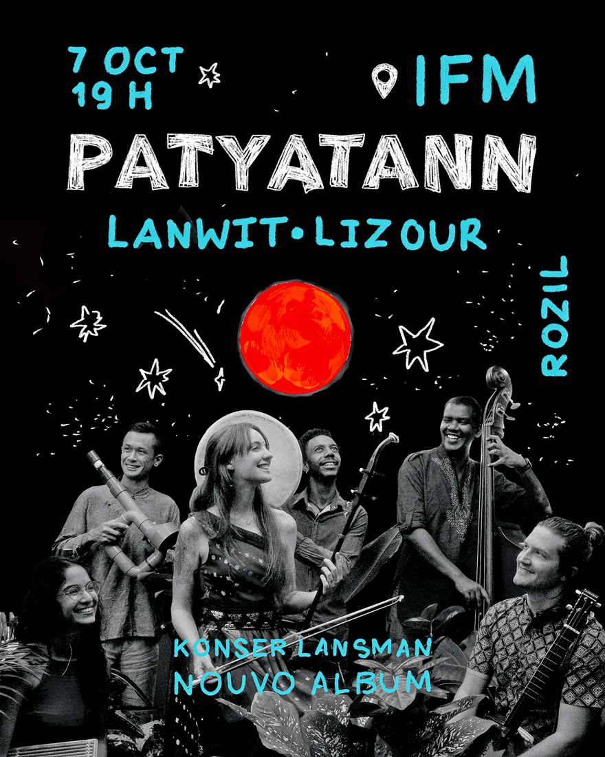 Ce mardi 7 octobre, à l’Institut Français de Maurice, à 19 heures, préparez-vous à un voyage en compagnie du combo de world music qui lancera son nouveau disque du nom de Lanwit.Lizour, un livre-album. Une nouvelle incursion pour ce groupe créé en 2012 pour représenter Maurice au World Event Young Artists en Angleterre, qui nous a aussi offert l’album Sanpek en 2016. Patyatann est composé de Saravasti Mallac (voix, mridanga, ravanne et erhu), Anthony Bouic (voix, bobre, guitare), Shekina Mootanah (piano, voix), Stephan Paul (contrebasse), Cledy François (percussions) et Kan Chan Kin (instruments homemade «trash to music», didgeridoo, flûte, kamele ngoni et percussions). Saravasti Mallac nous en dit plus sur l’album et l’événement de lancement.