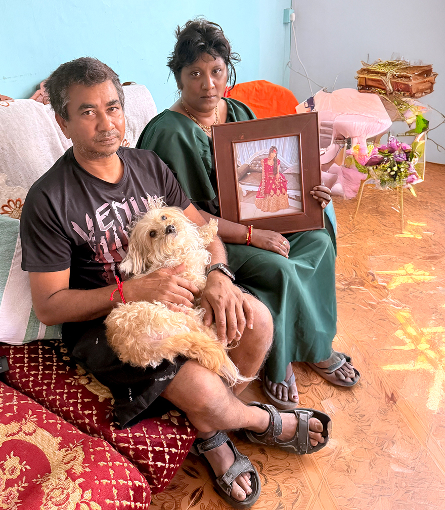 Après son décès, Poonam et Sanjay disent avoir appris ce qui avait poussé Hansini à commettre l’irréparable. «Elle venait d’apprendre que des photos intimes d’elle avaient été partagées sur Telegram ; les mêmes que j’avais demandé à son ex petit-ami d’effacer». Avant d’accrocher le morceau de tissu lui ayant servi à se donner la mort, poursuivent-ils, elle aurait discuté avec un ami vivant en Australie en appel vidéo, lui faisant part de ce qu’elle traversait. «Linn persiste, dir li pa fer sa. Kan linn trouv li mont lor stool, linn koup telefonn-la, linn sonn mo nies pou dir li fer kikenn vinn get Hansini deswit». Hélas, lorsque la belle-sœur de Poonam est arrivée dans sa chambre à coucher, il était déjà trop tard. Elle a été conduite à l’hôpital mais les médecins n’ont pu que constater son décès. Poonam poursuit, dévastée : «Fode mo tifi pann kone kouma pou fer fas avek tousala pou linn swisid li zour mo laniverser. Sak fwa li ti pe gagn enn ti dimal, li ti pe plore, ti pe bisin amenn li lopital. Sa gro douler-la, li pann kapav sipporte. Li pann ale lespri trankil. Nou pe kontign fer lapriyer toulezour pou li gagn so trankilite.»