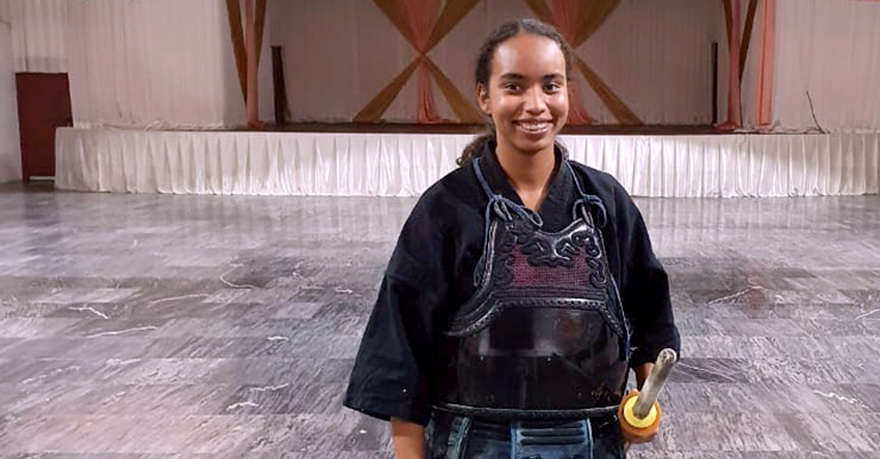 L’escrime des samouraïs au féminin. Elle est la seule femme adepte du kendo à la fédération éponyme, la Mauritius Kendo Federation (MKF). Elle c’est Marie Sarah Ornella Grégoire, une jeune kendokate qui pratique cet art martial japonais depuis un an.